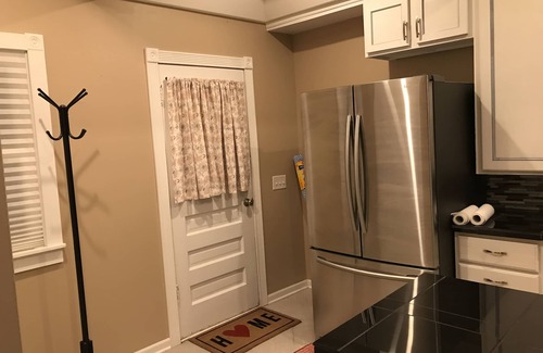 Every attention has been made to make your stay comfortable and safe. This home has three pretty bedrooms upstairs. The huge master bedroom has a king bed plus his and her closets. The south bedroom has a queen size bed, and the east room has a daybed with a trundle. Downstairs, the comfy couch opens to another queen size bed. All have new memory foam mattresses. For a little one, a new Pack-n-Play infant/toddler bed is provided. The dining room and kitchen are built and furnished for large or small gatherings of friends and family. New stainless steel appliances in the kitchen make food prep easy. A long, built-in oak window seat adds even more seating capacity in the dining room. Wired-in smoke and CO2 detectors, new plumbing and wiring, and accessible fire extinguishers ensure your safety.