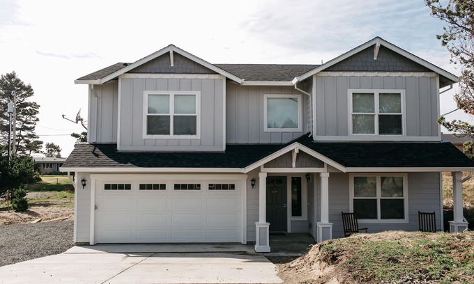 Come relax in this newer home situated in the middle of Surf Pines, a quiet, beachfront community on the North Oregon Coast. The 2,800 sq ft house features 4 bedrooms, 3 full bathrooms and sleeps 10 +guests with plenty of room to spare. From the large elevated deck and hot tub you will enjoy listening to the nearby waves crash and watching the numerous deer and elk feeding on nearby grass. Take a short walk down one of the communities private trails to beautiful Sunset beach which offers miles of beach combing, kite flying, boogie boarding and bonfires while watching the sun set over the Pacific. The house's central location puts you within 15 minutes of Downtown Seaside, Gearhart, Astoria and numerous beaches. For the outdoor enthusiast Sunset beach offers fantastic clamming and nearby seaside and nehalem bay offer a chance to catch tasty Dungeness crabs. Public golf courses, kayaking and miles of hiking and bike riding opportunities are all within a short drive. The house features a fully equipped kitchen, wifi internet, flat screen televisions, and cable for all the amenities of home. Parking is available for boat trailers and/or rv's and house is kid friendly with a pack and play, baby gates and high chair.