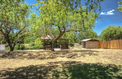 The Frio River Oasis is a large 5 bedroom, 3 bath home on the Frio River just east of Leakey. In the entrance is a quiet sitting area for reading or visiting, as well as a small bar height table for additional eating space. The house has a fully equipped kitchen with a serving bar and dining table. The spacious living room features tile floors and a propane fireplace. The Master bedroom has a king sized and queen size bed, with a large private shower/tub combo bathroom. Downstairs there are three additional bedrooms. One has two queen beds and large walk in closet, second has a single king bed, and the next one has a queen size bed and a twin daybed with trundle (sleeps2). There is another full-size bathroom with shower/tub combo downstairs. A washer and dryer, provided for your convenience, are next to a half bath downstairs as well. Towels and linens are included for your convenience. Upstairs is the fifth bedroom with two queen beds and full size daybed for additional guests (additional $100/ night). There is a large gazebo with a picnic table and chairs overlooking the Frio River and a fire pit provides an excellent place to just sit and enjoy the peaceful setting or visit with guests. Tubing, swimming and kayaking on the Frio River are just out the back door. Let us be your family and friends gathering place! (Sleeps up to 20)