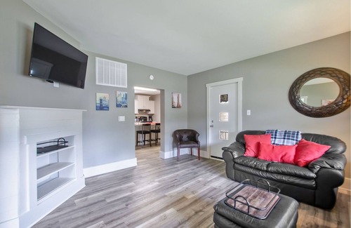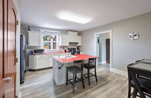 Located close to downtown, this modern farmhouse has enough square footage for 4 to 6 people. With multiple living areas, there's plenty of room for everyone to spread out and find a bit of privacy. A large, fenced-in backyard with a patio is perfect for your four-legged family member. There's also a paved driveway with plenty of off-street parking. A Spacious and Modern Farmhouse