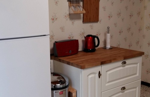 Fully equipped kitchen (oven, microwave, dishwasher, Senseo coffee maker, electric coffee maker, kettle, toaster, fridge-freezer) and open to a very large terrace which has a table and chairs for 12 people , electric blinds and barbecue.