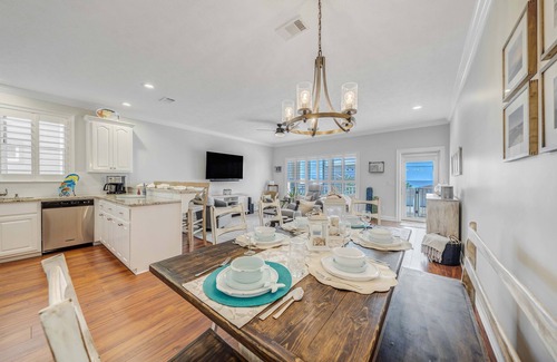 This beautiful home offers almost 2,600 square feet of luxury living space, including two fully equipped kitchens, a spacious living and dining area, 4 bedrooms, and 4 full bathrooms. Guests may also access the private garage for securely storing beach gear. This home is perfect for 2 families traveling together.