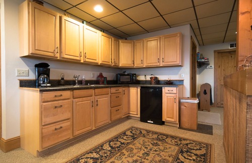 Main level is approved for wheelchair access with comfortable entries and ramps. Main level features open living, dining table that seats 16 guests and an additional 3 or 4 at the breakfast bar. Kitchen has two ovens, stainless steel appliances, granite counter tops and a wine refrigerator. Living area has a cozy leather pit sofa with curl up chairs around a warm fireplace and flat screen T.V. The main floor also has two bedrooms, one with king bed and ADA approved bathroom. Second spacious room has two queen beds with private bathroom. Also accessible on the main floor are a pool table, wrap-around deck with beautiful mountain and lake views, and gas grill.