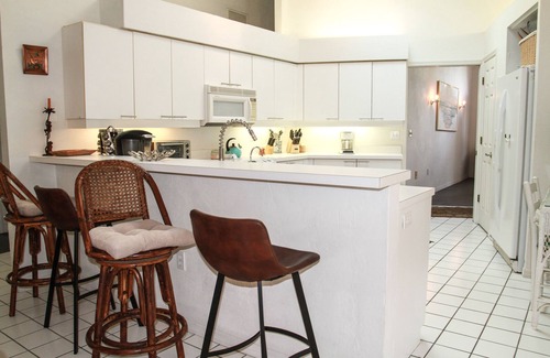 Inquire for any booking questions on dates. Big Pink offers quiet solitude, sanctuary and privacy for clients of owner and is available for booking by accepted invitation for limited stays througout the year. Prime location near Casey Key, Venice and Sarasota and a tranquil place to recover, relax and just take it easy. This is a uniquely large home for the area with soaring ceilings. You will be sure to appreciate the waterfront location towards the back of a quiet neighborhood located on a lagoon/pond with prevelant wildlife. The natural light abounds inside the home with skylights, soaring ceilings, large windows and disappearing slider doors. Enjoy beautiful waterfront sunsets and a relaxed artsy vibe inside surrounded with lush tropical plants including plumerias, monstera, ferns, hibiscus and much more. Wonderful floorplan including bright kitchen that opens up to the living room with barstools. Everything you'd need to cook at home is provided. Nearly every type of coffee make, blender, utensils, cookware. You'll love the arched architectue around the pool that makes you feel worlds away. This area of Florida provides the perfect location close to both Sarasota and Venice without the crowds. Nokomis Beach is a favorite with locals and offers a fishing jetty and far less people than neighboring Sarasota beaches. Walk from Nokomis Beach to the prestigious Casey Key and you'll feel like you have your own private beach. There is plenty to do close by with a state park, the legacy trail, golf, groceries and ample amount of restaurants, stores etc. Enjoy the views to the heated pool or lake from nearly every room. The master features a king pillow top bed, small sofa/lounging area, tv, dresser, full sliders to pool, 2 huge closets. The large bath features double vanities, soaking tub, toilet closet and shower with slider to private courtyard...offering a truly unique showering experience. The second bedroom has it's own wing on the other side of the house and features lake views with a queen bed and a large full bath. The third bedroom has a full bed and small desk. The home is most suitable for 2-5 adults. Boat and Jet Ski rentals available closeby at Island Jet Ski next to popular Casey Key Fish House/ Tiki bar. Beach towels, chairs, cooler provided. If you are seeking a more secluded, natural, relaxed experience, this will certainly fit the bill. You must visit the Nokomis drum circle on Wednesday or Saturday for the full Nokomis experience. Other closeby activities include the Ringling art museum and gardens, the Marie Selby orchid gardens, Myakka river park and much much more...