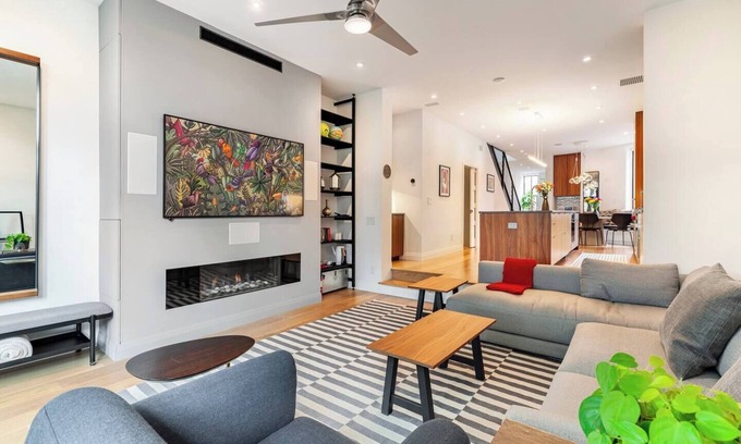 This fully renovated town home in the heart of Georgetown is a truly unique offering in our nation's capital. Encompassing 3200 SF across 3 floors, it features an open floor plan, gourmet kitchen, contemporary furnishings, a full apartment on the ground level with its own entrance and kitchen, and a large back garden with a deck, lower patio, Weber grill, and fire pit. Smart home features means guests can use voice commands for lighting, HVAC, ceiling fans, shades, door locks, and more.