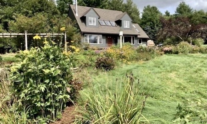 Find your calm in this updated mountainside home located 10 mins from Smugglers Notch. This cozy home is located on 10 acres of private land and in 250+ acres of a nature preserve with rivers, woods, and hiking. The front of the property features a pond nestled into a thoughtfully landscaped rolling hill. Paths are maintained throughout for pleasant daytime strolls. The back of the home offers private access to a huge nature preserve w/ wooded trails & streams. Inside, modern conveniences are offered including fully stocked kitchen, sauna, wifi and gym.