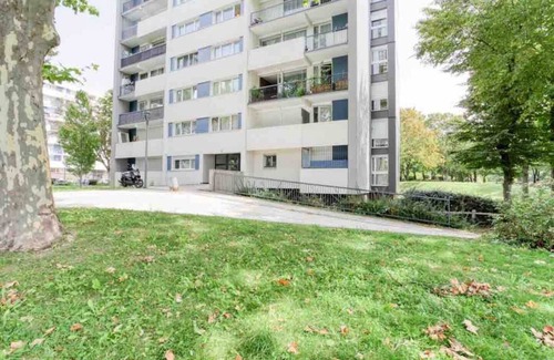 Welcome to our beautiful and large F5 apartment of 80 m2 with a superb view 🌉 from the 9th floor (with elevator). The flat is fully furnished, equipped and secure. Less than 5’ walk from the public transport Tram T4 station «Rougemont Chanteloup» our apartment is close to many activity area by public transport: