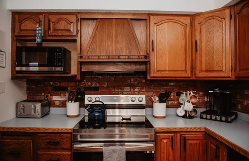 • Kitchen: Fully stocked with full-size appliances, dishware, cookware, drip coffee maker, toaster, and more