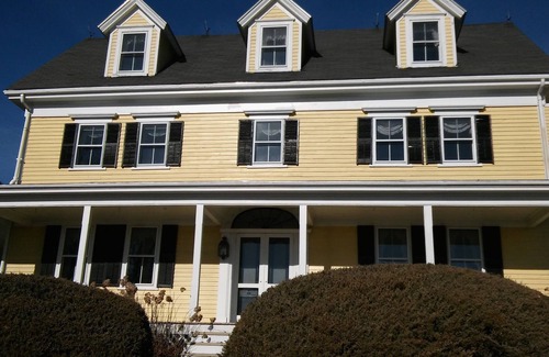 The riverfront house is a 5 bedroom renovated home built in 1803. It has a large country kitchen, a wrap around front porch perfect for watching seals and lobster boats. The large yard has a pond where you can watch the ducks feed. A glassed in porch and several sitting rooms complete the setting. There are 4 full baths and a washer and drier. The private dock is a perfect spot for launching a kayak, or just sitting on the water. The owners have a separate apartment at the back of the house. We can not invite pets to our home. We do not allow parties.