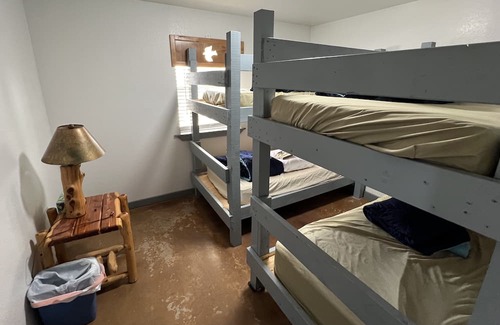 12 Bed - 8 Bath BEAUTIFUL Rustic Lodge and Retreat Center located on 35 acres less than 2 hours from the DFW Metroplex! Large eating table, all electric kitchen with accessories, Laundry room, LINENS PROVIDED! Sleeps 43 comfortably! Perfect place to host your family gatherings, weddings and more! Recreational area for kids to enjoy!