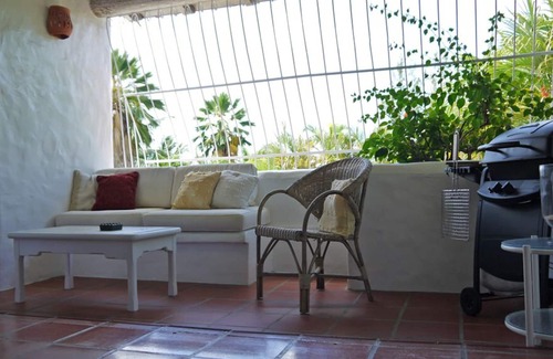A very spacious, cool and secure Apartment on the First Floor of a small Block of only 4 Units. The Apartment is well equipped with a modern Italian Kitchen, and two recently refurbished Bathrooms. Both Bedrooms are air-conditioned and all rooms have ceiling fans. The Apartment is secured with wrought Iron, so doors and windows can be left permanently open even when you go out.