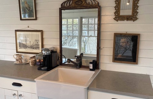 This is a beautiful spacious home, loaded with amenities. It has large rooms and large common areas. The location is amazing. A very short walk to the beach and close to town and park. Great family house with lots of room, lots of bathrooms and bedrooms. The furnishing are gorgeous and the house is serene, sunny and welcoming. Close to town, beach, park, lake. Large comfy rooms. Lush beds. Kitchen is gorgeous and fully stocked, professional range, etc! Great Porch for relaxing! Large backyard. Outdoor shower and grill. Central Air. Flat screen TVs., Enjoy backyard with basketball court and seating area or drink your morning coffee on the beautiful front porch. A true home away from home. All Linens and towels are included.