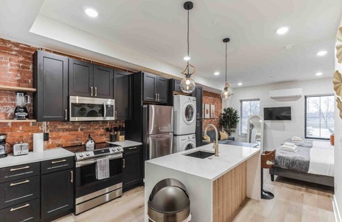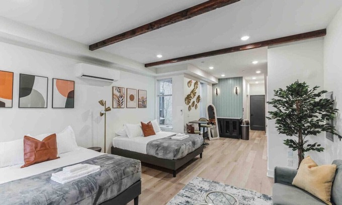 Create amazing memories at this large & modern studio apartment. This cozy nook is perfect for a short or long term stay. Stunning decor throughout. Impeccably designed and renovated to perfection. Top-notch finishes. Enjoy the fresh air from the private balcony. Fully equipped kitchen. Large steam shower. Two queen-sized beds w/memory foam mattresses. Comfortably sleeps four people. Only a short 10 minute drive to Center City!