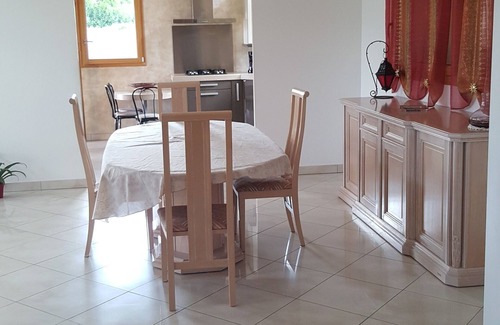 This house with large space will fill you with its large pool of 10 m long with his treatment naturally active oxygen and these terraces .You have a walk-in shower and bathtub réez upstairs 2 WC, a fitted kitchen with oven, plate cooking gas city, dishwasher, washing machine dryer, additional fridge, all rooms are large and very welcoming