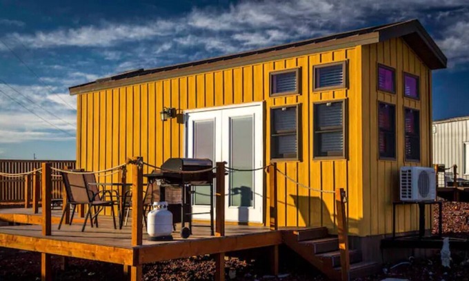 Desert Oasis located in Zions Tiny Getaway features one loft, an open floor plan, skylights above the bed for endless start gazing , a private deck, fire pit, and fiber internet. Surrounded by mountain views and an endless night sky. located close to a 2 lane road (quiet at night) fast access to Zion national park (45min) gooseberry mesa (15min) sand hallow lake (20min) shopping (20min) Grand canyon (2hrs) Bryce canyon (1.5hrs) Pipe spring monument (20min) lake Powell (45min) water canyon trail (25min) and lots more.