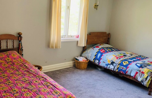 Stay at a Tudor home with a lovely backyard, ample bedrooms and common spaces. Multiple reading nooks.