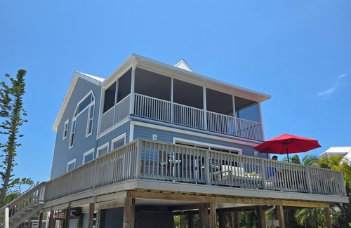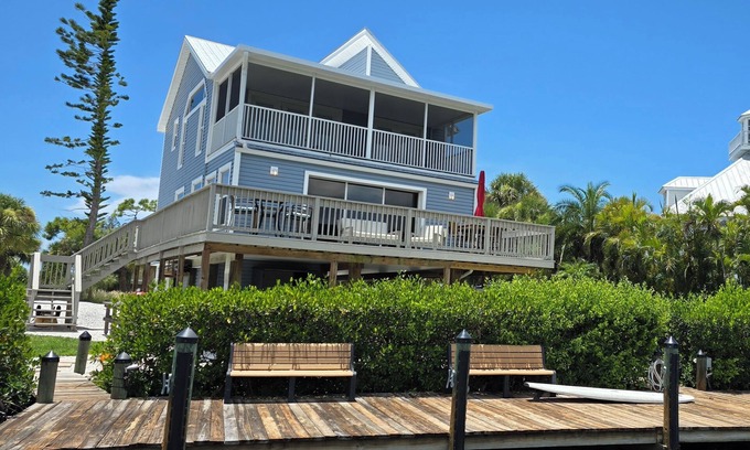 Beautifully remodeled 2 .5 bedroom 2.5 bath home located directly on the Intercoastal waterway on Palm Island / Don Pedro Island. Incredibly spacious, sleeps 8. Short golf cart ride or walk to pristine beaches.