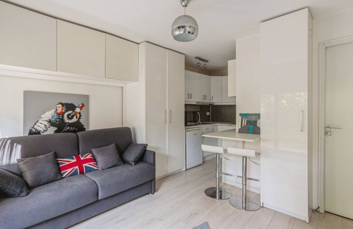 - an integrated studio with a sofa bed that converts into a double bed, a bathroom with shower and toilet, and a small kitchen,