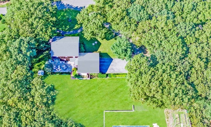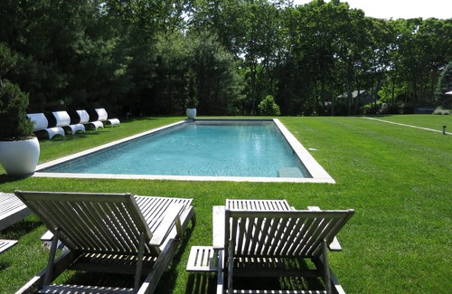 Sophisticated Farmhouse in Sag Harbor Village 4 bedrooms, 3 baths, sleeps 8, Private 2 acres on 5 acre preserve. 16’ x 48’ Salt Water Heated Pool, 3,000 square feet.