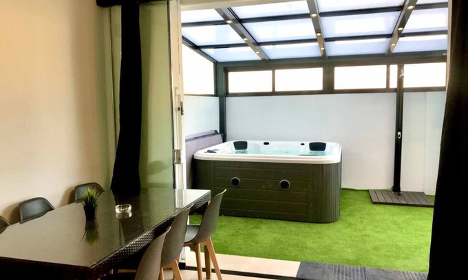 Relax in the hot tub or sip a drink in the garden of this apartment. As for the great indoors, you can come inside and enjoy the free WiFi.