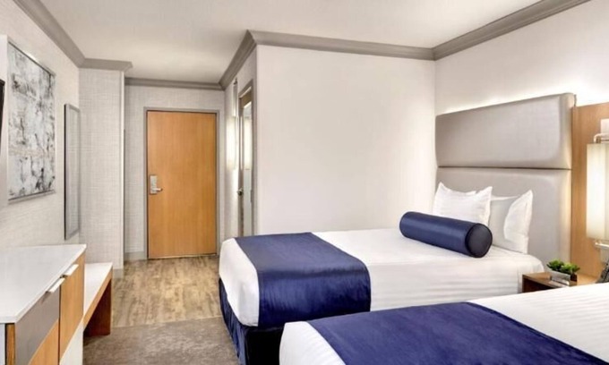This Vegas property boasts two swimming pools, multiple dining options and an 80,000 square foot casino. A 15,000-square-foot resort-style family pool features cabanas, a café, bar, and special events area. The adults-only rooftop pool offers panoramic views of Las Vegas. Guests can work out in the 24-hour private fitness center. The on-site casino offers live entertainment nightly. The restaurant, 800 feet high and rotating 360 degrees, is located at the top of the Stratosphere Tower. A classic Las Vegas buffet, including a Sunday champagne brunch, and a variety of other restaurants, cafes, and bars are also on-site. This property is a perfect spot for guests looking for an authentic Las Vegas experience.