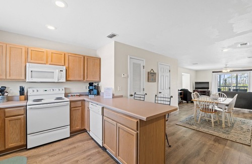 There is a full washer and dryer on the main level, half bath, dining area that seats six, and well stock kitchen with a window over the sink with a view of the playground, perfect for watching the kids play!