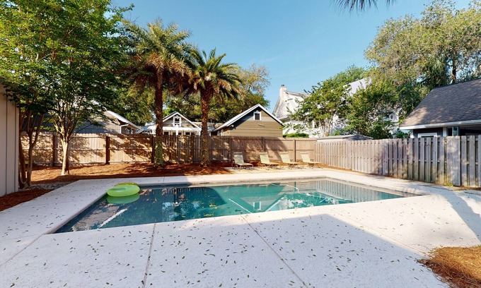 Our East Beach home has plenty of room for your family of up to 10, to stretch out and enjoy. 8 is standard occupancy. The home has separate seating areas for folks to get together or spread out - amongst the family room, sitting room, and dining room. The home is immaculately clean. The kitchen and its Viking appliances are fully equipped for gourmet cooking or serving simple carry-out meals. All bedrooms have TVs with premium cable. We're 1000 feet from the 9th street beach access point of St Simons' East Beach. And the back yard is its own oasis, with a large pool that can optionally be heated during the cooler months.