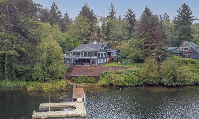 2.2 miles from Chinook Winds Golf Resort in Otis, Laurel Haven - Meredith Lodging features accommodations with access to a hot tub. This vacation home offers free private parking, private check-in and check-out, and free Wifi. Outdoor seating is also available at the vacation home. Offering a terrace with lake views, this vacation home also features a TV, a well-equipped kitchen with a dishwasher, an oven, and a microwave, as well as 4 bathrooms with a walk-in shower and a hair dryer. The accommodation has a fireplace. A casino can be found at Laurel Haven - Meredith Lodging, along with a garden. Otter Rock is 22 miles from the accommodation, while Yaquina Head Lighthouse is 26 miles from the property. Portland International Airport is 93 miles away.