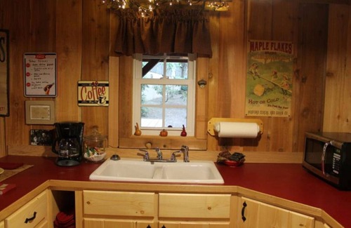 This darling cottage/cabin has a full kitchen, seating area with hand made rockers, Queen size bed, bath with shower, Satellite TV, air & heat. Charming décor! Rustic in and out with all the modern amenities. Outdoor dining area, playground and with fire pit, gas grill, picnic tables, deck and outdoor sunroom.