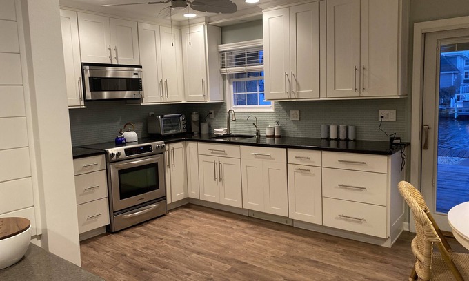 This home features new furnishings, modern kitchen, and endless sunsets! Main bedroom has king size bed, en suite bathroom, walk in closet and TV. Balcony off the main bedroom overlooking the bay. Bedroom 2 has Queen with twin trundle. Bedroom 3 has twin bed & Full with twin trundle. Plenty of room for everyone! Central Air, Washer and Dryer in large pantry. The inside is gorgeous but you come to Lavallette to enjoy the Jersey Shore. Patio overlooks the bay to enjoy swimming, paddleboarding, fishing, crabbing and the beautiful sunset every night. This community has a pool to enjoy after a day at the beach. The beach is two blocks away and plenty of restaurants, shops and ice cream all within walking distance.
