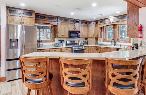 Step inside to discover a spacious 5,400-square-foot living area, recently redesigned to comfortably accommodate up to 16 guests. The lodge features a fully equipped kitchen and inviting bedrooms with serene views of the surrounding landscape. With six cozy bedrooms, this home is ideal for large groups or families seeking a relaxing escape.