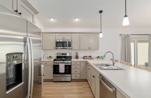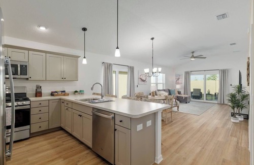 Looking for the perfect escape? Welcome to our Lazy Day Getaway Villa! This brand-new 2 bed, 2 bath villa is spacious, stylishly decorated, and fully stocked with everything you need for a relaxing stay. Nestled in the desirable Sydney Villas neighborhood, you're just a quick walk, drive or golf cart ride to the unique canine inspired Saluki Recreation Center. The highly anticipated Eastport Town Square-set to open in 2025-is also nearby! We are pet-friendly for small dogs under 35 lbs.