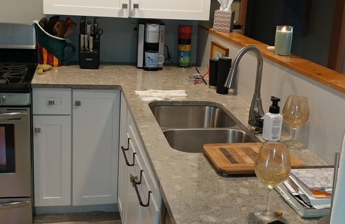 Our newly expanded 1400 sq. ft. two bedroom home is fully furnished with a dining room, spacious and comfortable family room (with fold out sofa), fully fenced back yard for kids and Fido, and bonus game room for "rainy day fun." Two sets of sliding doors leads onto the large grey slate patio to sip your morning coffee.