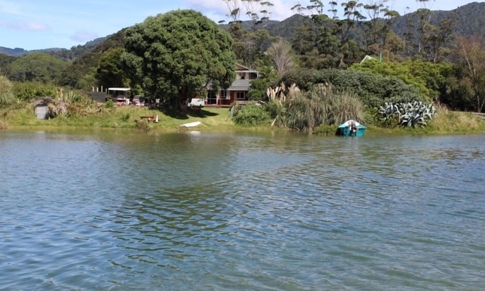 Awesome estuary location situated 14 kms from Coromandel Township in Kennedy Bay. Beautiful surroundings in a peaceful environment with picnic table right on the waterfront, a birdwatchers paradise. Swim or launch the boat/kayak from the front lawn. Watch the large variety of seabirds and wading birds, and in the winter if you are lucky enough you will see the white heron (Kotuku) hunting for food in the estuary as the tide goes out. Fabulous grassed area for play. Safe swimming.