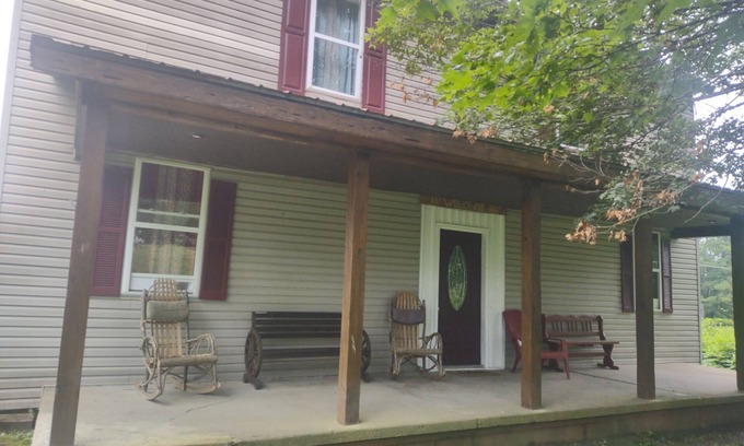Escape to the quiet beauty of Hocking Hills at Home Place, a charming farmhouse near McArthur, OH. This peaceful retreat sleeps up to 6 with 2 bedrooms (2 queens + 1 king) and a full-size pull-out couch in the upstairs TV area.
