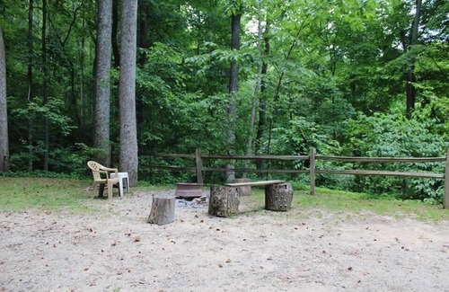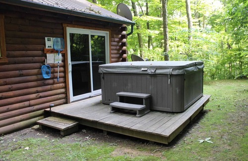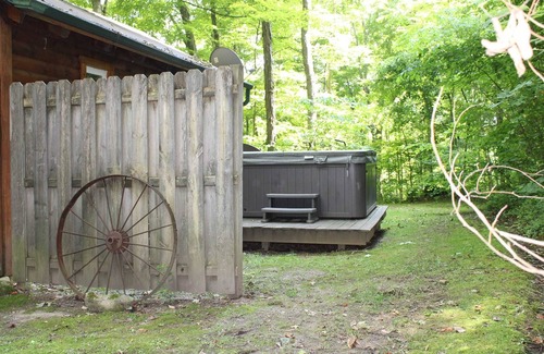 Rustic luxury secluded on 10 wooded acres. Total privacy. Hot Tub, gas grill,fireplace, fully equipped kitchen, luxurious king size bedroom. Perfect romantic getaway. 9 State Parks within minutes