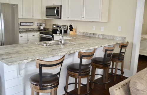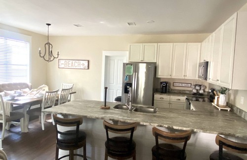 *The coastal inspired new furnishings encourages a family fun vacation. The downstairs has been freshly updated with new wood flooring and paint. The den has a 50 inch Ultra HD 4K TV, Wifi, Cable, and access to Netflix / Hulu. The den also has a sofa, loveseat, and a large comfy chair. We also have many board games, puzzles, and movies!