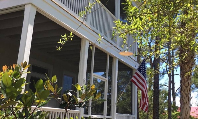 Barefoot Cottages is a gated community located one mile from Windmark Beach. The Coastal Village has three pools, a hot tub, a clubhouse, a fitness center, and BBQ areas surrounded by natural areas and walking trails. Our cottage is located directly across the bay and has a gulf view from our screen porches. You will be able to enjoy stunning sunsets right from your private porch! It is only one mile to Windmark's Public Beach and Bike Trail.