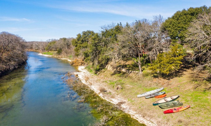 Come relax and enjoy Texas resort-style living by the Middle Bosque River. Cruise down the river on a kayak, watch the wild life, breathe the fresh air, and see the stars at night.