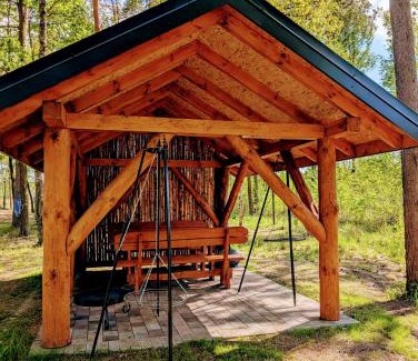Featuring a garden, Leśna Przystań Nowy Kobrzyniec provides accommodations in Kobrzyniec Nowy. This beachfront property offers access to a terrace and free private parking. On clear days, guests can head outside to enjoy the vacation home's outdoor fireplace or simply kick back and relax. The air-conditioned vacation home consists of 1 bedroom, a living room, a fully equipped kitchenette with a toaster and a kettle, and 1 bathroom with a shower and a hair dryer. Towels and bed linen are offered in the vacation home. For added privacy, the accommodation features a private entrance. During warmer months, you can make use of the barbecue facilities and eat on the private balcony. For guests with children, the vacation home features outdoor play equipment. Cycling is possible within the area and Leśna Przystań Nowy Kobrzyniec offers a private beach area. Golub-Dobrzyń Castle is 21 miles from the accommodation. Bydgoszcz Ignacy Jan Paderewski Airport is 72 miles from the property.