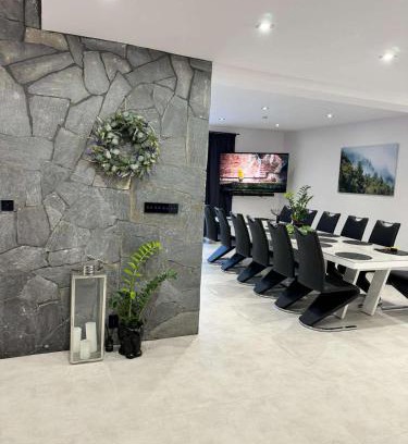 LEŚNE ZACISZE Wisła - Jacuzzi, Bacówka, Niesamowite Widoki is a recently renovated vacation home in Wisła where guests can make the most of the garden and barbecue facilities. This property offers access to a balcony, free private parking, and free Wifi. The vacation home has an outdoor fireplace and a hot tub. Featuring a terrace and mountain views, the spacious vacation home includes 4 bedrooms, a living room, flat-screen TV, an equipped kitchen, and 2 bathrooms with a shower. A private entrance leads guests into the vacation home, where they can enjoy some wine or champagne and chocolates or cookies. This vacation home is allergy-free and non-smoking. For guests with children, the vacation home features outdoor play equipment. Skiing, cycling, and fishing are possible within the area, and LEŚNE ZACISZE Wisła - Jacuzzi, Bacówka, Niesamowite Widoki offers ski storage space. Museum of Skiing is 3.9 miles from the accommodation, while Zagron Istebna Ski Resort is 5.8 miles from the property.