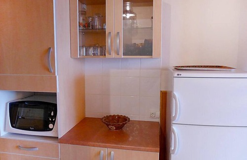 3-room apartment 50 m2 on 3rd floor. Spacious, practical furnishings: living/dining room with TV. Exit to the balcony, south facing position. 1 room with 2 x 2 bunk beds (80 cm). Exit to the balcony, north facing position. 1 room with 1 french bed (140 cm). Kitchenette (oven, 3 induction hot plates, microwave). Bathroom, sep. WC. Very beautiful panoramic view of the mountains. Facilities: Internet (WiFi, extra). Please note: non-smokers only.