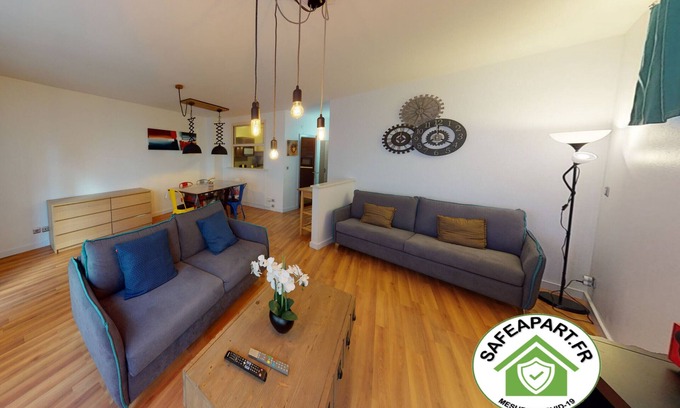 🥨 Located 700m from Strasbourg city center and 450m from the SNCF train station, this magnificent 65m² apartment, comfortable and modern, is ideal for a stay with family, friends, colleagues, for a weekend, holidays or work. The apartment can accommodate up to 6 people.