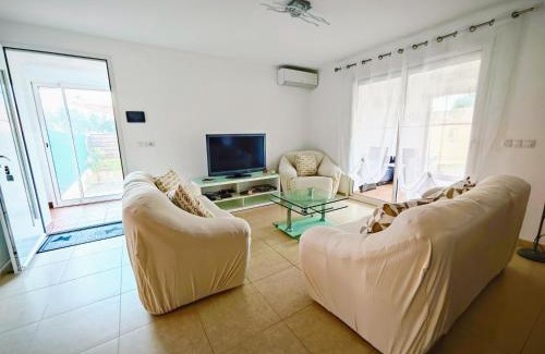 Featuring a garden, Le 38 près du Lac offers accommodations in Saint-Estève. The air-conditioned accommodation is 2.6 miles from Stade Gilbert Brutus, and guests can benefit from private parking available on site and free Wifi. Peyrepertuse Castle is 30 miles away and Théâtre de l'Archipel is 3.6 miles from the apartment. Offering a terrace and lake views, the spacious apartment includes 2 bedrooms, a living room, flat-screen TV, an equipped kitchen, and 1 bathroom with a bath. Towels and bed linen are featured in the apartment. The property has an outdoor dining area. Collioure Royal Castle is 22 miles from the apartment, while Queribus Castle is 24 miles away. Perpignan - Rivesaltes Airport is 3.1 miles from the property.
