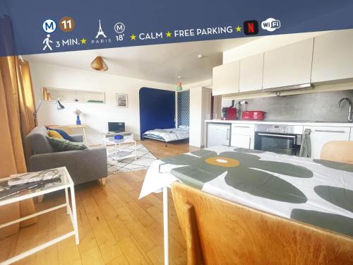 Le Balcon Rouge is located in Noisy-le-Sec, just 5.3 miles from Gare du Nord and 5.4 miles from Gare de l'Est. This property offers access to a balcony, free private parking, and free Wifi. La Cigale Concert Hall is 5.7 miles from the apartment and Pigalle Metro Station is 5.8 miles away. This apartment includes 1 bedroom, a living room and a flat-screen TV, an equipped kitchen with a dining area, and 1 bathroom with a shower and a washing machine. Towels and bed linen are offered in the apartment. The property has an outdoor dining area. Pompidou Center is 5.9 miles from the apartment, while Opéra Bastille is 6.5 miles from the property. Paris - Charles De Gaulle Airport is 9.3 miles away.
