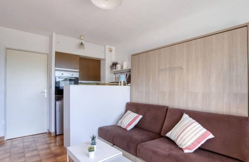 1-room studio 23 m2 on 1st floor. Comfortable and beautiful furnishings: living/dining room with 1 bed (80 cm, length 190 cm), 1 double fold-away bed (160 cm, length 190 cm), TV (flat screen). Exit to the terrace. Kitchenette (oven, 4 ceramic glass hob hotplates, toaster, kettle, microwave, electric coffee machine, Capsules for coffee machine (Senséo) extra). Bath/WC. Electric heating. Terrace 9 m2, south facing position. Terrace furniture, electric barbecue. Facilities: washing machine. Internet (WiFi, extra). Parking space n 67. Please note: 1 small pet/ dog allowed. TV only FR. Smoke alarm. Offer by a private individual according to Art. 155, IV of CGI. 13028 001699 6B