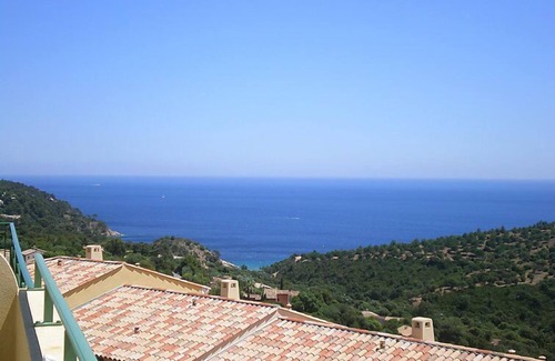 3-room terraced house 67 m2. Comfortable and beautiful furnishings: living/dining room with separate WC, flat screen and hi-fi system. Exit to the terrace. Open kitchen (4 hot plates, oven, dishwasher, toaster, kettle, microwave, electric coffee machine). On the lower ground floor: 1 room with 1 french bed (160 cm, length 200 cm), air conditioning. Exit to the terrace. 1 room with 2 beds (90 cm, length 200 cm), air conditioning. Exit to the terrace. Bath/WC. Electric heating. Terrace 22 m2, terrace 44 m2, roofed. Terrace furniture, deck chairs (4). Beautiful view of the sea. Facilities: washing machine, iron, hair dryer. Internet (WiFi, extra). Parking space n A3. Please note: TV only FR. Smoke alarm. Please note: smart TV Netflix , You tube..., Bluetooth player. Sea and hills view.