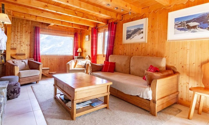 Individual chalet on the mountainside on 3 levels. On the ground floor: 1 bedroom (2 single beds 90x200 cm), bathroom (shower), separate toilet, office/relaxation area with TV and terrace. On the 1st floor (access on one level from the garage and the parking lot): living room-kitchen area with balcony and balcony-terrace, 1 bedroom (2 twin single beds 80x190 cm with television), separate toilet. On the 2nd floor: 3 bedrooms (1 double bed 140x190 cm with balcony and television / 1 double bed 160x200 cm with balcony and television / 2 single bunk beds 90x190 cm), bathroom (bathtub), separate toilet. Garage opposite the chalet (1 car). 4 private parking spaces in front of the chalet. Rental of towels and bed linen from the owner. Le Beneton is located in a pleasant, unspoiled natural setting on the edge of meadows. Offering excellent comfort and a warm and cozy mountain feel, its south/east-facing terrace offers exceptional panoramic views of the valley, the village, and Mont Blanc. It features a small, flat outdoor area in front of the chalet, a large sloping plot of land all around, a balcony-terrace, and a grassy terrace. Its relaxation room, large children's bedroom, and the layout of the beds make it an ideal place to get together.
