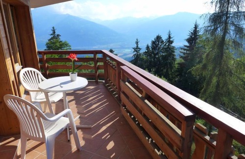 "Le Bristol A20", 3-room apartment 77 m2 on 2nd floor. Spacious, comfortable and beautiful furnishings: living/dining room with 2 sofabeds (90 cm), dining table, bath/WC and TV (flat screen). Exit to the balcony, south facing position and west facing position. 1 double bedroom with 1 double bed (140 cm), shower/WC. Exit to the balcony, south facing position. 1 room with 2 beds (90 cm), bath/WC. Exit to the balcony, west facing position. Kitchenette in the entrance (2 hot plates, oven, dishwasher, toaster, kettle, microwave, electric coffee machine, raclette grill, fondue Set (cheese)). Parquet floors. Large balcony 20 m2, south facing position and west facing position. Balcony furniture. Very beautiful panoramic view of the mountains and the valley. Facilities: hair dryer. Internet (WiFi, free). Please note: non-smokers only. Smoke alarm.