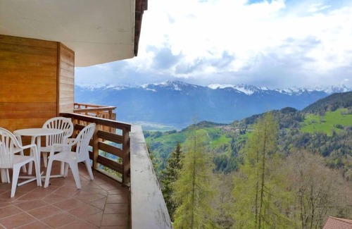 "Le Bristol A54", 2-room apartment 57 m2 on 5th floor. Bright, comfortable and beautiful furnishings: large living/sleeping room with 1 double sofabed (2 x 80 cm, length 200 cm), dining table, bath/WC and TV (flat screen), DVD. Exit to the balcony, west facing position. 1 double bedroom with 2 beds (90 cm), bath/WC. Exit to the balcony. Kitchenette in the entrance (mini-oven, oven, 2 ceramic glass hob hotplates, toaster, kettle, microwave, electric coffee machine, raclette grill, fondue Set (cheese)). Balcony 14 m2. Balcony furniture. Very beautiful view of the mountains and the valley. Facilities: hair dryer. Internet (WiFi, free). Please note: non-smokers only.
